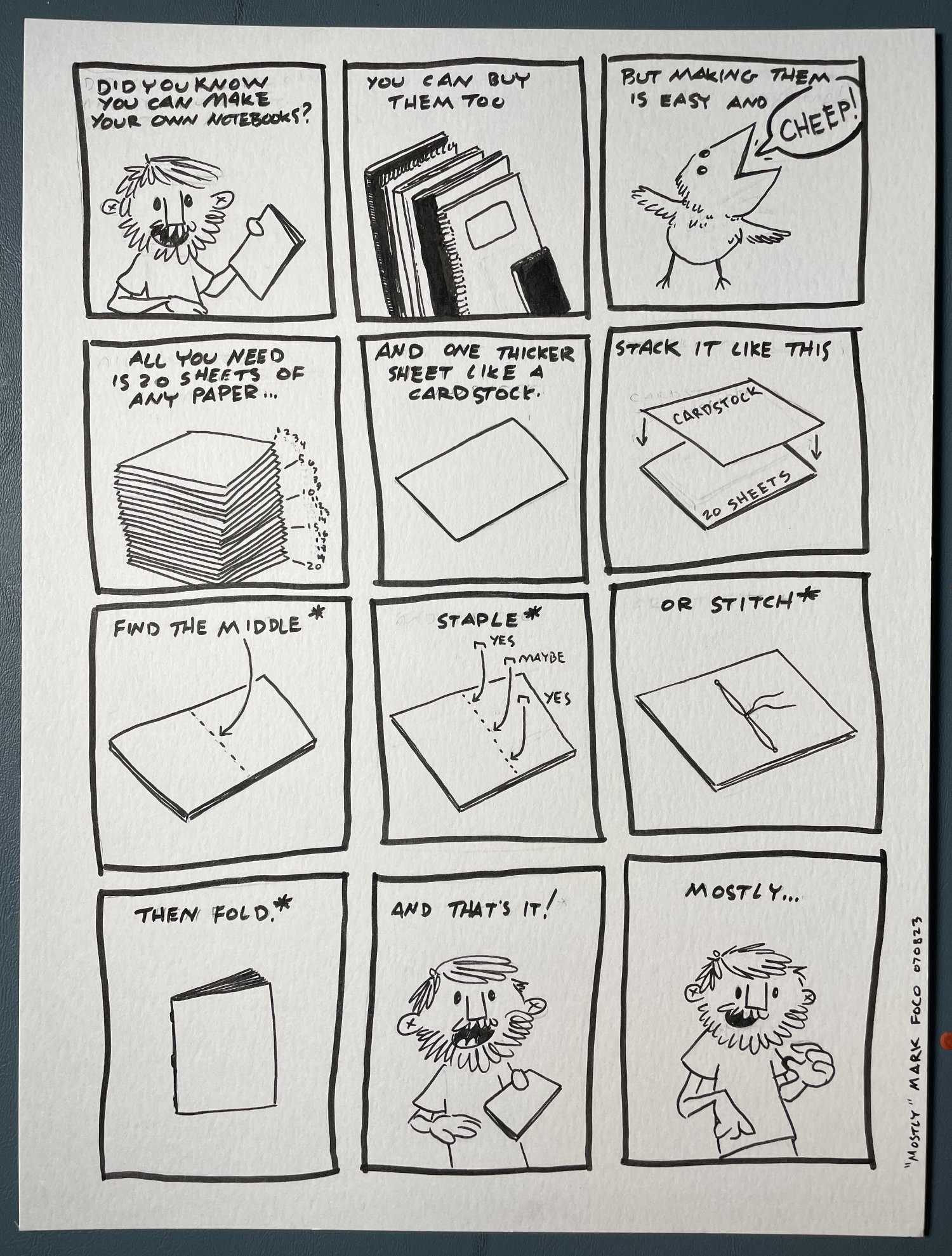Here, I managed to pull that tooth and finish a “tutorial” comic. You tell me. Does it add some value? It is cheaper to make your own dang notebooks but I get if it’s not your thing.