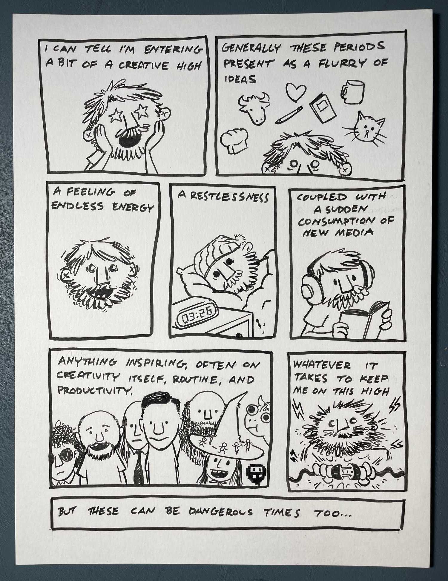 I’ve always ridden the waves of a moderately manic personality. It’s nothing serious, and certainly not on par with those diagnosed with actual manic personality disorders. But I definitely find myself surfing high on creativity from time to time. Unfortunately the crest of every wave is balanced out by a trough of equal and opposite magnitude and if I let myself climb too high I risk a catastrophic wipe out.