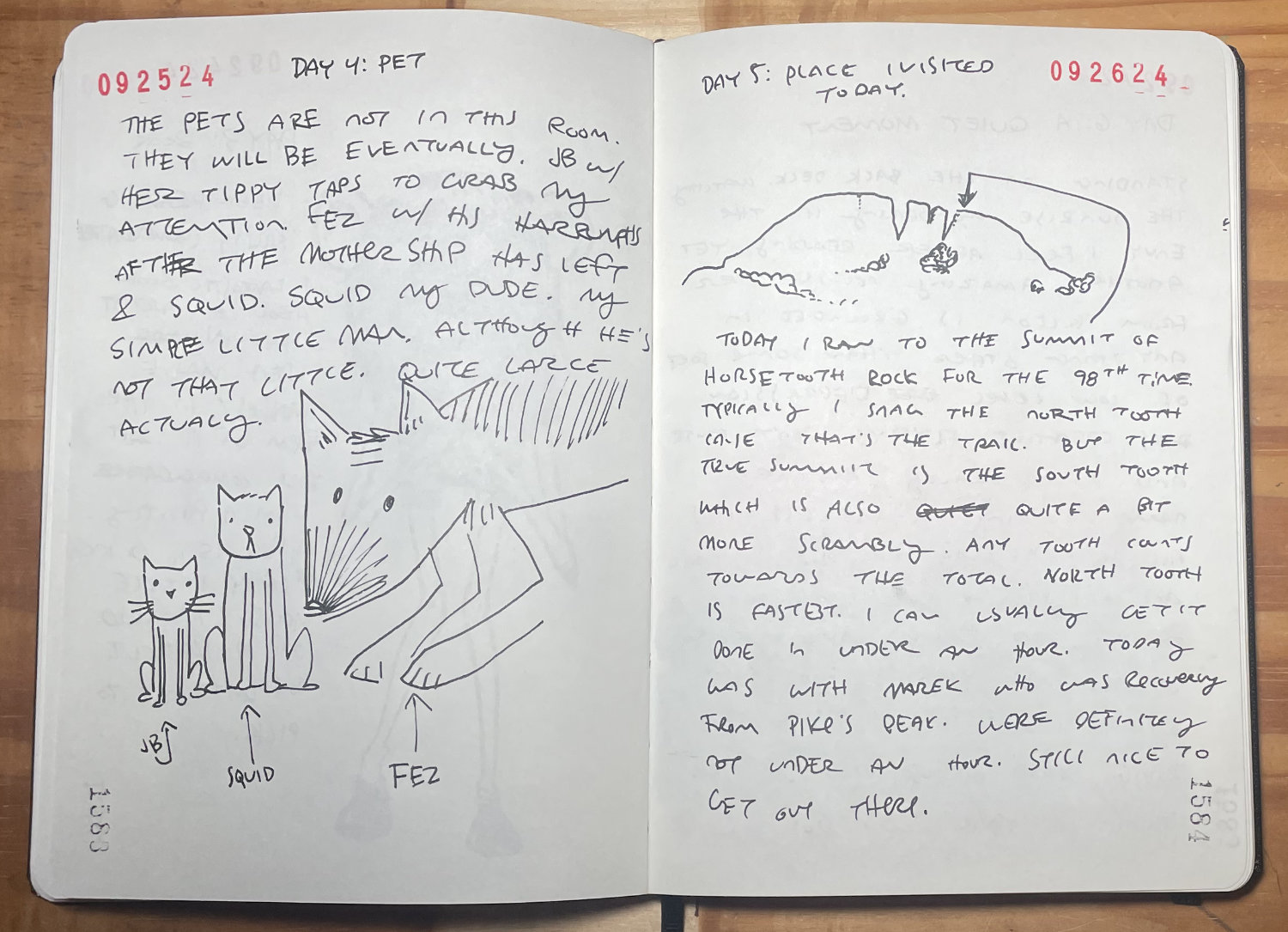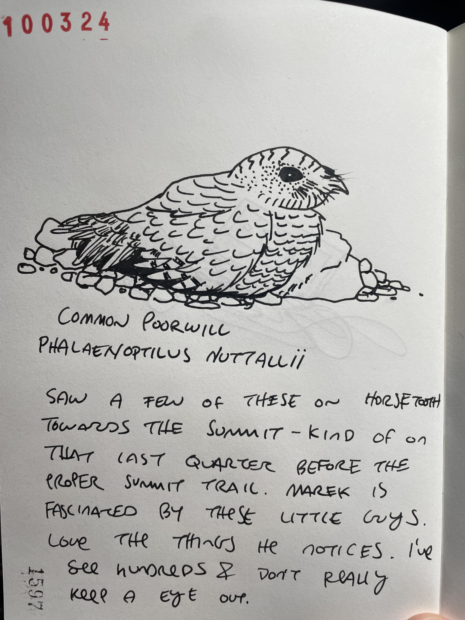 Today there are a few extra journal pages below the line today. One is about a recent hike in Rocky and the other is about an interesting bird that can be found before dawn on the trails around here.