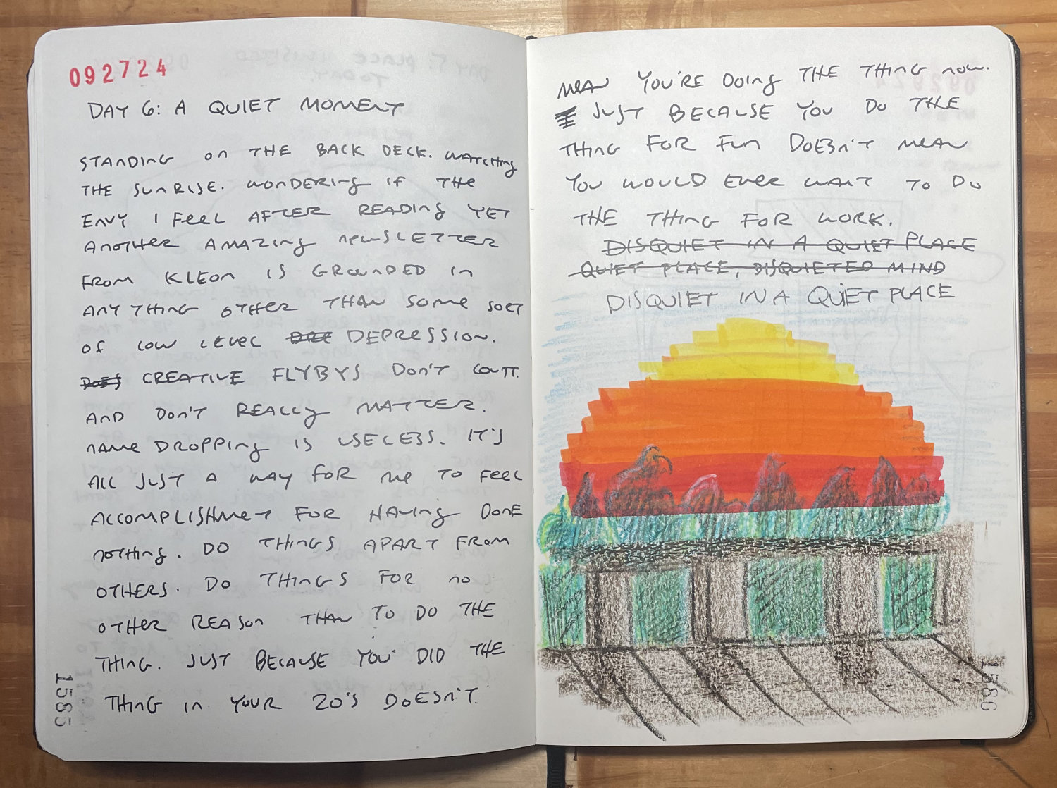 These pages aren’t for anyone or anything. They go on a shelf and collect dust. It’s not so much the thing but the doing that I find valuable.