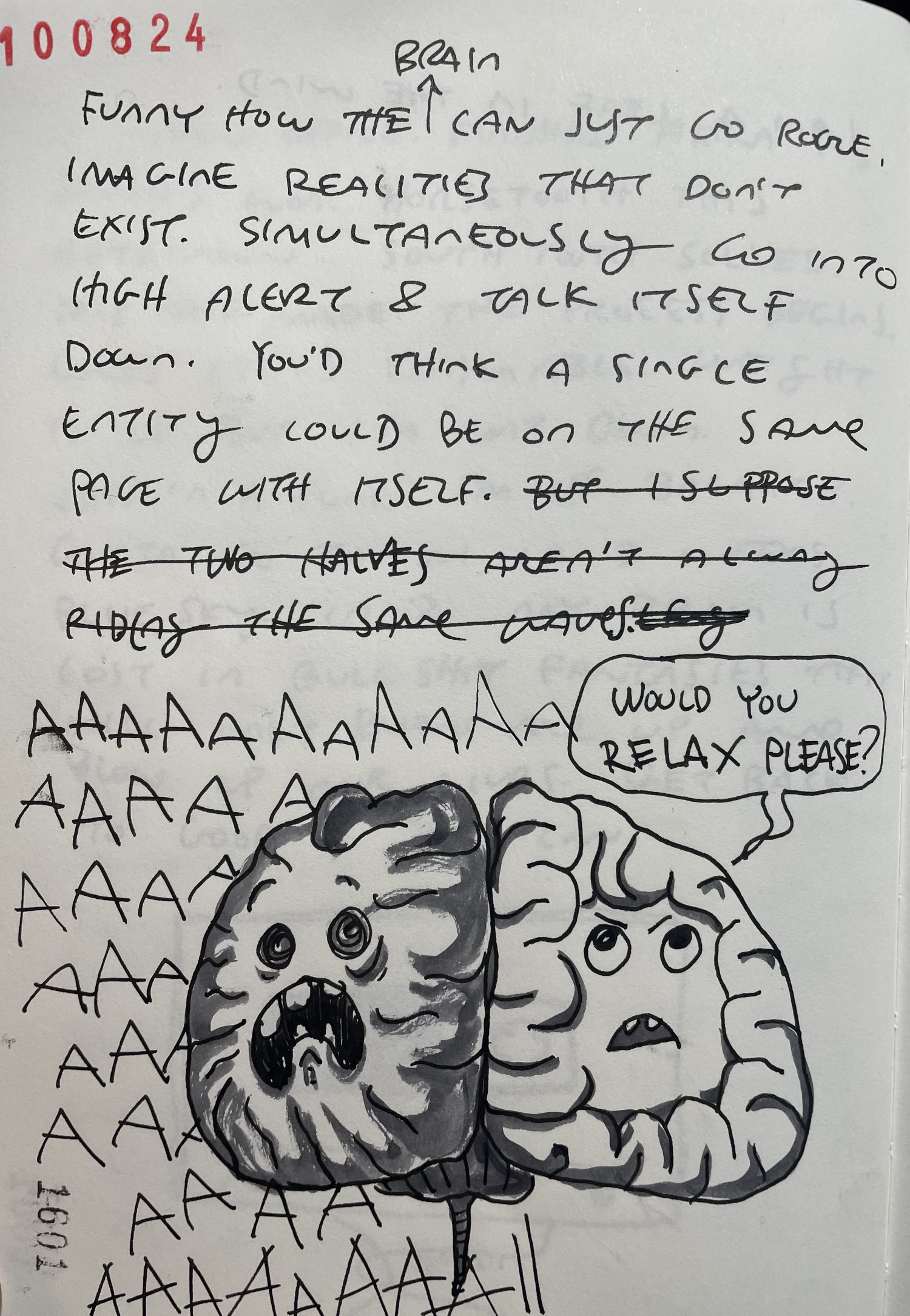 Sometimes when I’m in a funk it helps to manifest my feelings by pinning them down on paper. The brain doesn’t always make sense. It’s ok if the work doesn’t either.